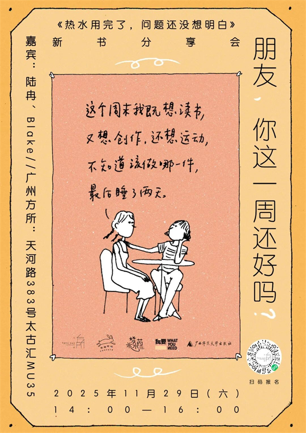 广州|朋友,你这一周还好吗?——《热水用完了,问题还没想明白》新书分享会