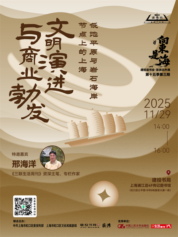 上海成为中国最早发展的现代城市,与其独特的地理与气候环境关联至深。独特的自然禀赋深度影响上海的文明演进史,塑造了上海商业勃发的生长进程,从中还可窥探中华文明起源过程中气候与地理的重要影响。11月29日,我们邀请到《三联生活周刊》资深主笔、专栏作家、《气候、地理与古代的我们》作者邢海洋,将围绕上海的今昔发展,探寻一些关键问题的答案。
