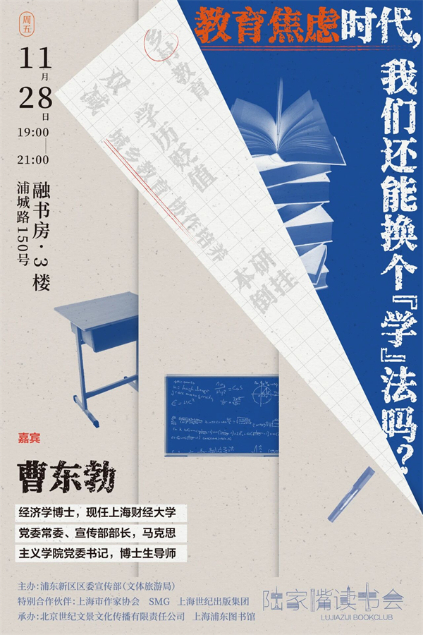 当我们深陷“鸡娃”焦虑时,教育的另一重图景正在远方静默展开。更耐人寻味的是,当这代孩子历尽艰辛走进大学,等待他们的可能是新的茫然——“文科生不敌PPT,理工科脱节于产线”的调侃背后,是教育供给与社会需求的深层错位。11月28日晚,陆家嘴读书会非常荣幸地邀请到上海财经大学的曹东勃教授。曹老师有独特的跨界视角——他在云南挂职的经历,让他对乡村教育的现实有切肤之感;他执教高校多年,能近距离观察年轻人的迷茫与成长;同时,作为一名教育政策观察者,他对政策的动向有着敏锐的洞察。我们无法给出标准答案,但通过梳理这些政策文件,我们可以更清晰地了解国家层面正在如何尝试解题,我们每个人,又能从中获得怎样的启发。