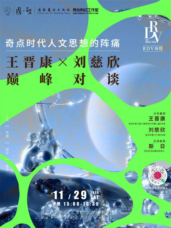 当AI超越人类智慧,当基因编辑重塑生命……我们固守数百年的人文思想,是否已走到尽头?在这个科技爆炸的奇点时刻,一个根本性问题浮出水面:建立在“人类主体性”基石上的现代人文思想,是否正在失去解释世界的能力?11月29日,我们邀请了科幻作家、《新人类系列》《行歌三叠》作者王晋康,科幻作家、《三体》作者刘慈欣,文化艺术出版社负责人斯日做客SKP。这不仅是一场关于科幻的讨论,更是一次关于人类未来的思想实验。