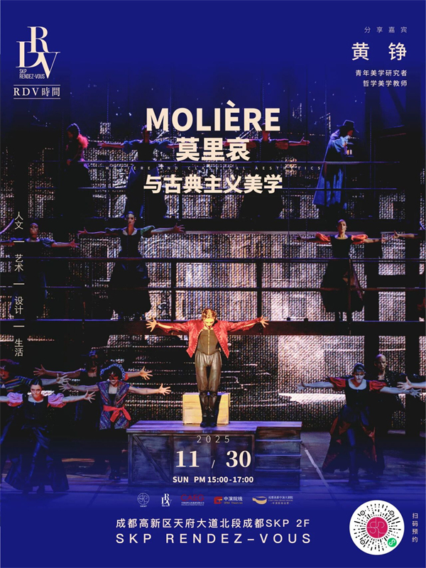 长久以来,莫里哀被视为法国古典主义戏剧的代表人物之一,但他的创作理念与美学精神,真的是古典主义的赓续吗?他所创造的审美价值与古典主义的终结、以及现代性的精神构建之间,究竟有着什么样的关系呢?11月30日,我们特邀青年美学研究者、哲学美学教师黄铮做客成都SKP。这个周末让我们跟随资深学者的脚步,走进莫里哀的美学世界。