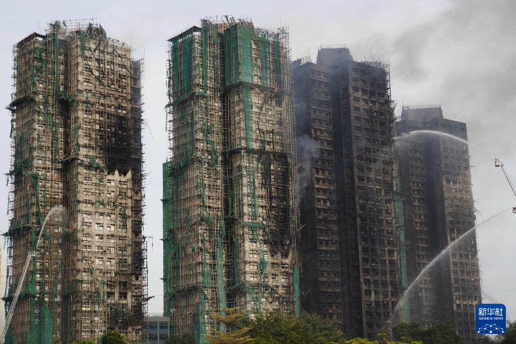 11月27日拍摄的香港大埔宏福苑火灾救援现场。新华社 图