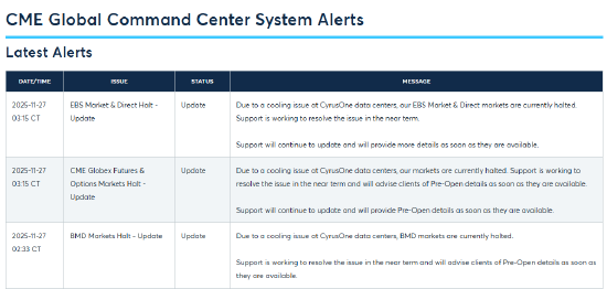 由于数据中心故障,期货和期权交易被迫暂停,影响波及多个市场,涉及数万亿美元的合约。